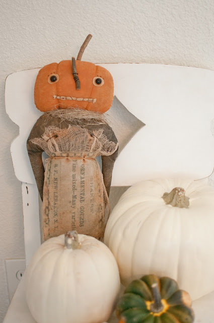 One of my favorite crafters makes these adorable whimsical creatures. The owls, buzzard, pumpkin with the curly stem, pumpkin man (below), and mouse are all made by her. Many of you have asked about her items but unfortunately she does not sell online. If you are local to the Sacramento area, she will be at the St. John's craft fair selling some of her Halloween decor even though it is mainly a Christmas show.