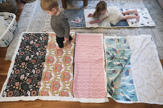 Little helpers helping me figure out the fabric placement.