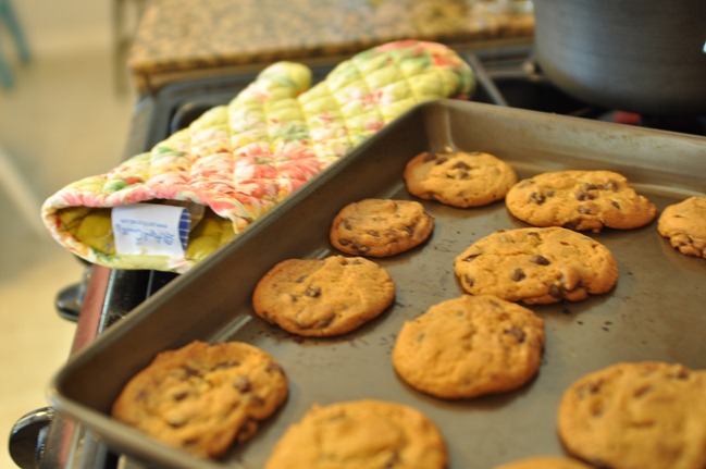 My husband was having one of those days where chocolate chip cookies seemed the only solution. I did not have time to cook a batch from scratch so I had to have a little talk with my cookie snob within me and put aside my agenda for the sake of my husband. If I was going to go to the store, I would at least buy refrigerated cookies. To my husband, it says I baked. To me it says I allowed myself to come to a compromise.